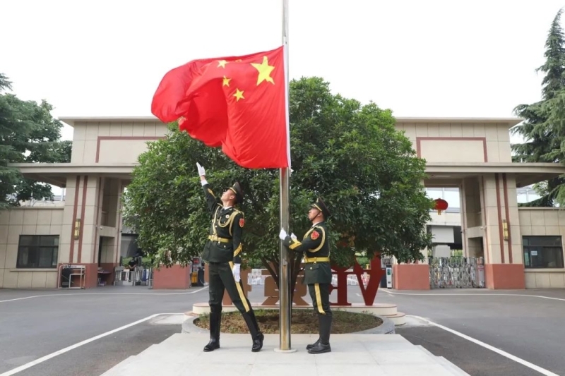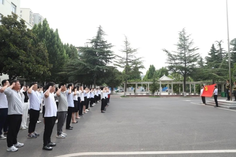 英姿飒爽的护旗手迈着铿锵有力的步伐,护卫国旗入场,伴随着雄壮的国歌,鲜艳的五星红旗冉冉升起,学院领导和全体党员向国旗行注目礼,共唱国歌,表达对党和祖国的热爱。