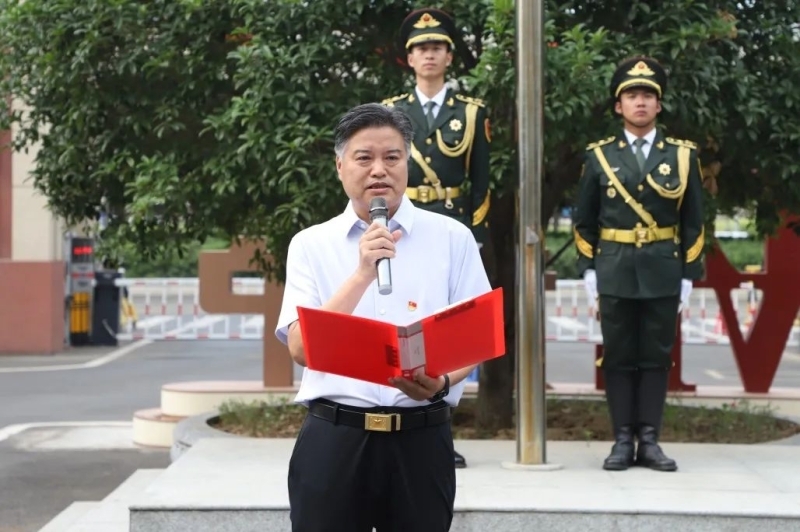 “庆七一•升国旗”仪式暨重温入党誓词活动在高新校区1号教学楼前广场举行。学院领导刘仁、马明芬、张运克、苏东民、王楠斐、蒋春梅、杨晓燕、魏颖华、崔明辰出席此次活动,全体党员参加了此次活动。此次活动由学院党建指导员、党委副书记王楠斐主持。
