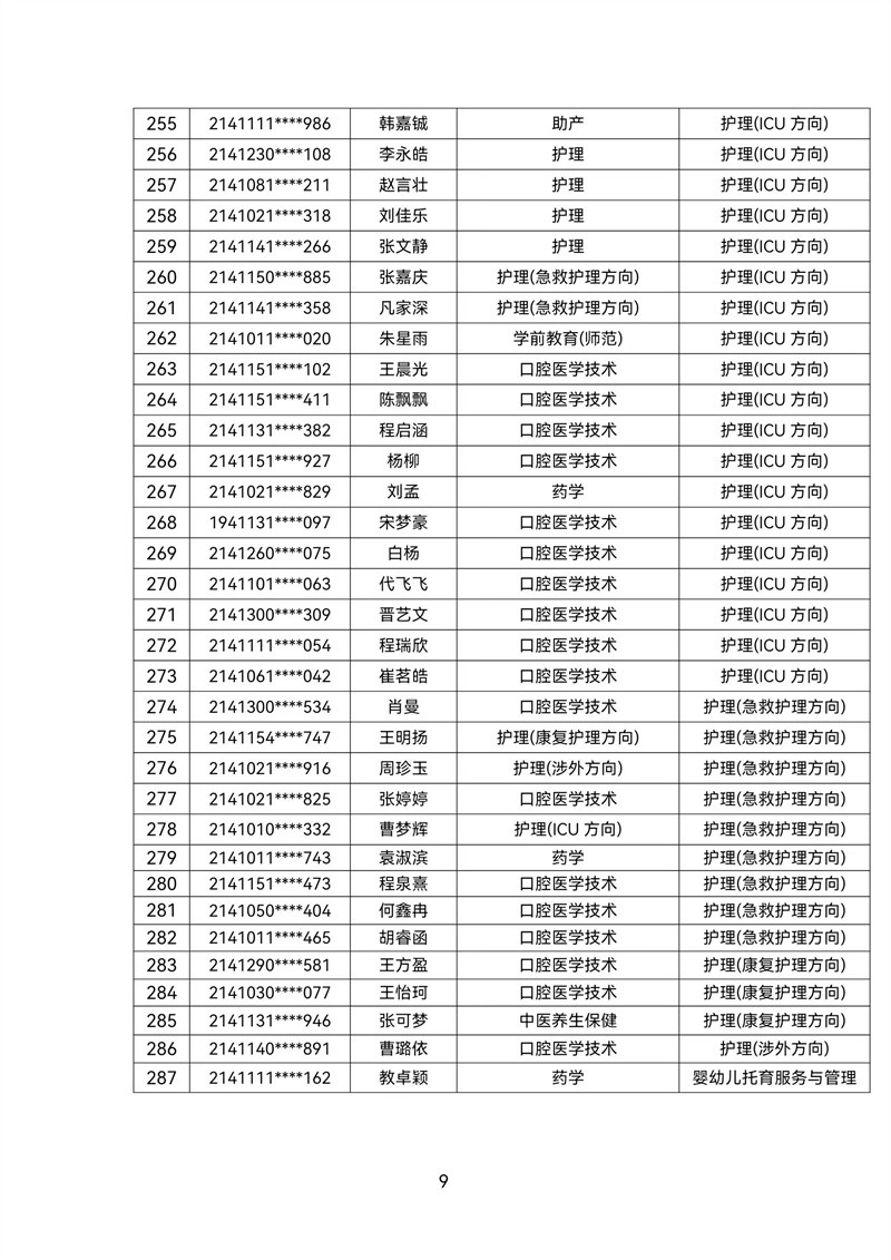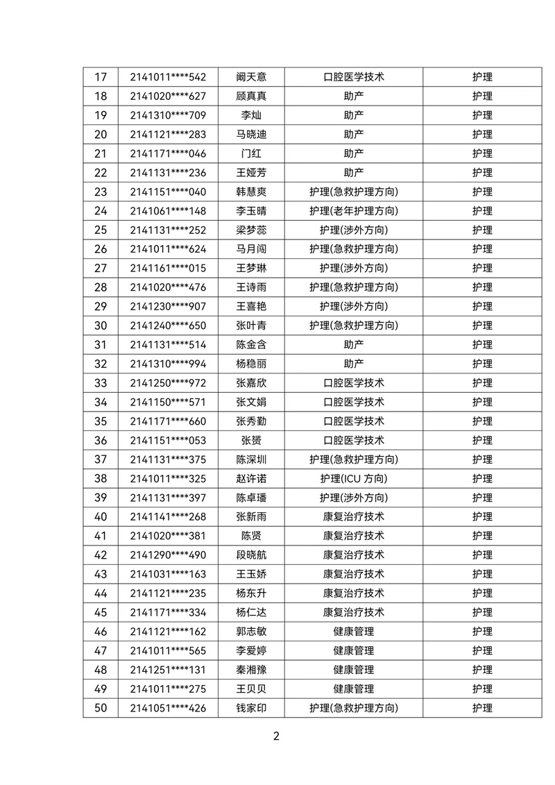 2021级转专业公示名单