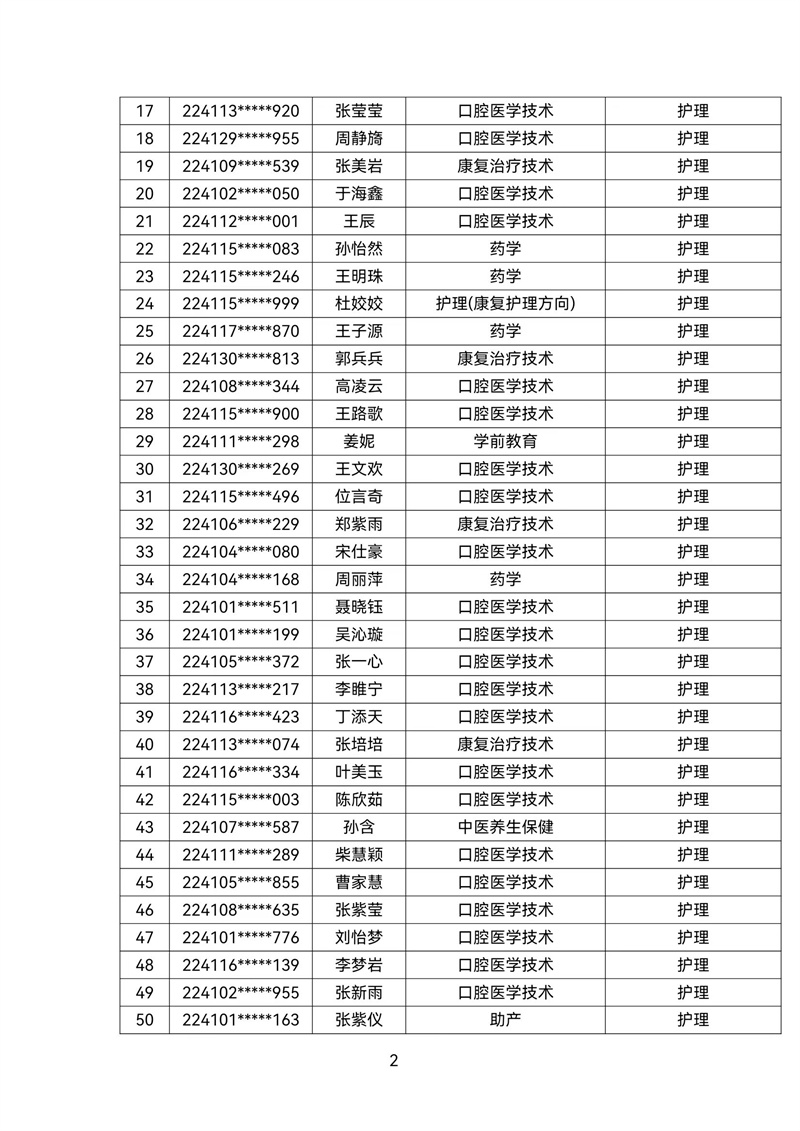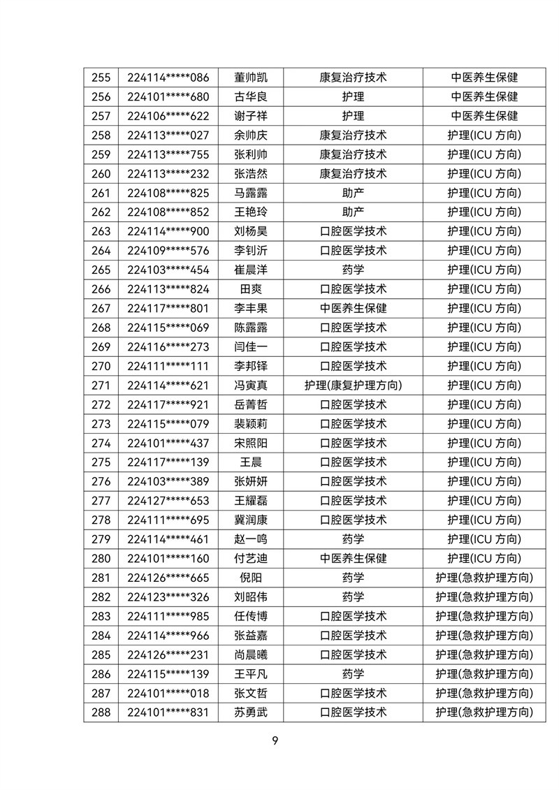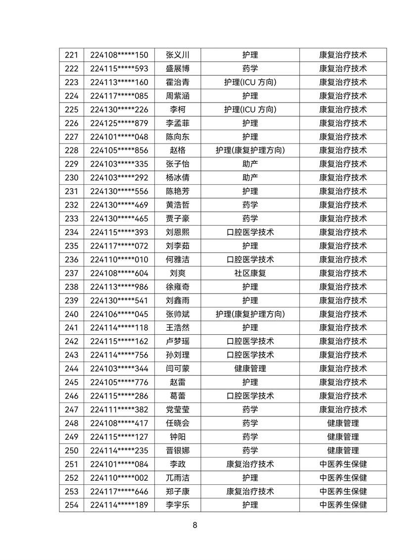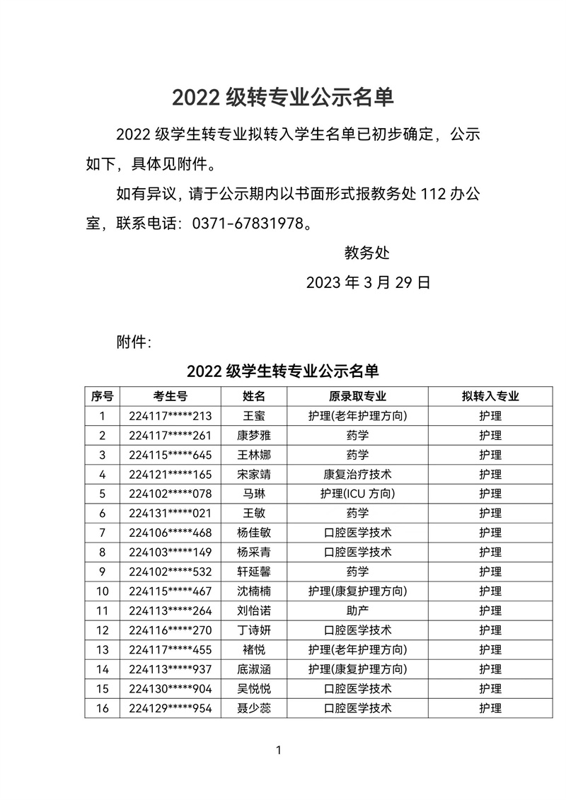 2022级转专业公示名单